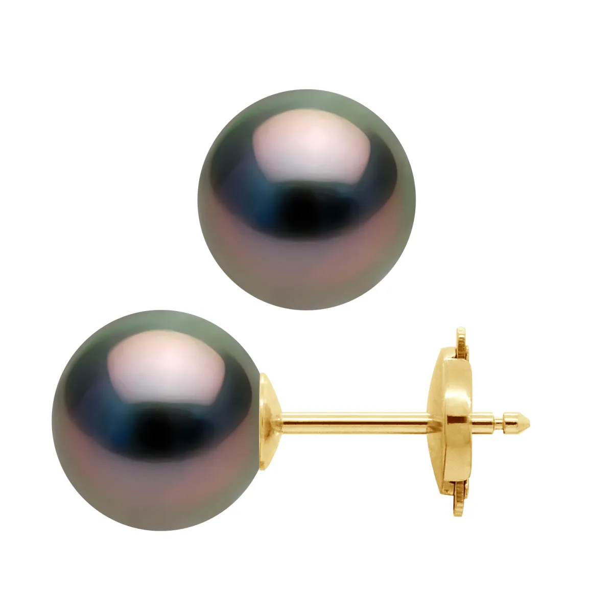 Oorbellen Echte gekweekte parels van Tahiti Ronde 9-10 mm - A + Kwaliteit - Security System Gepatenteerde - Captive-allergeen en 100% - Yellow Gold 375 duizendste - 2 jaar garantie op fabricagefouten - Geleverd in hun presentatie geval met een Certificaat van Echtheid en een internationale garantie - Al onze juwelen zijn gemaakt in Frankrijk.