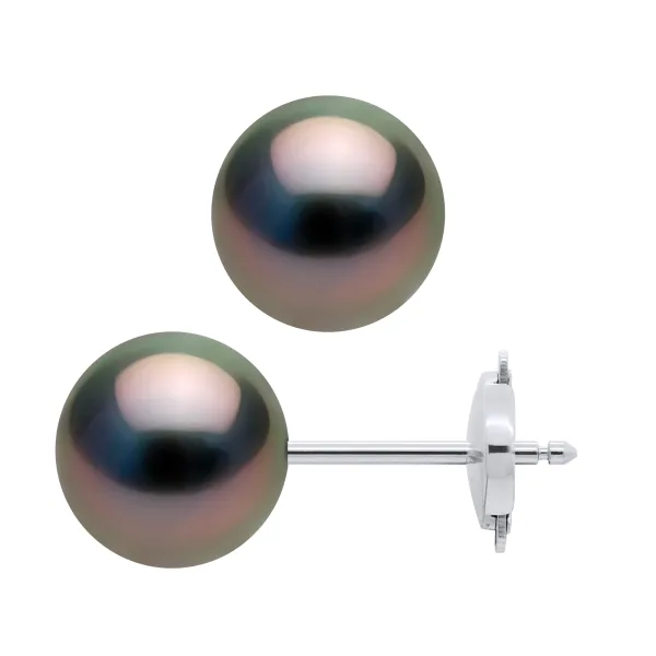 Oorbellen Studs Tahitian Parels Ronde 9-10 mm System Security White Gold