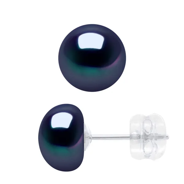 Oorbellen Witgoud - Echte GeCultiveerde Zoetwaterparels Knop 8-9 mm - KLEUR ZWARTE TAHITIAANSE STIJL - Vlindersluiting SILICON Goud / Gepatenteerde Veiligheidssluiting - Geleverd met Certificaat van Authenticiteit en Internationale Garantie - GEMAAKT IN FRANKRIJK