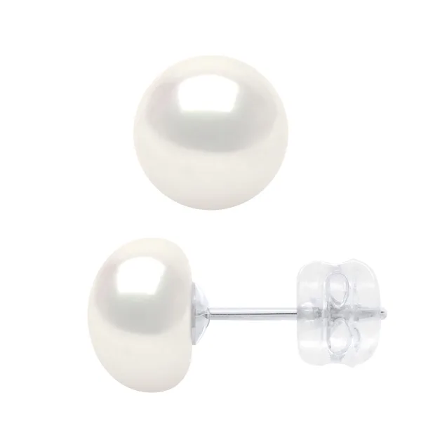 Oorbellen Witte Goud - Echte Gekweekte Zoetwaterparels Knop 8-9 mm - KLEUR NATUURLIJK WIT - Vlinder Sluiting SILICON Goud / Gepatenteerde Veiligheidssluiting - Geleverd met Certificaat van Echtheid en Internationale Garantie - GEMAAKT IN FRANKRIJK