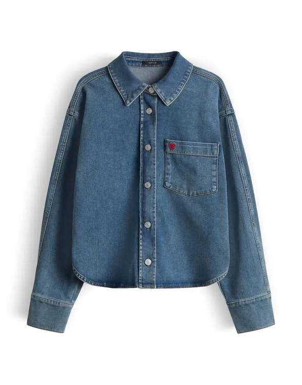 Dames jeansblouse van OPUS;Katoenmix met stretch;relaxed fit;Model 'Falentine';Knoopsluiting;Stitching;Borstzak;Ruglengte bij maat 36: 57 cm;Mouwlengte bij maat 36: 55 cm