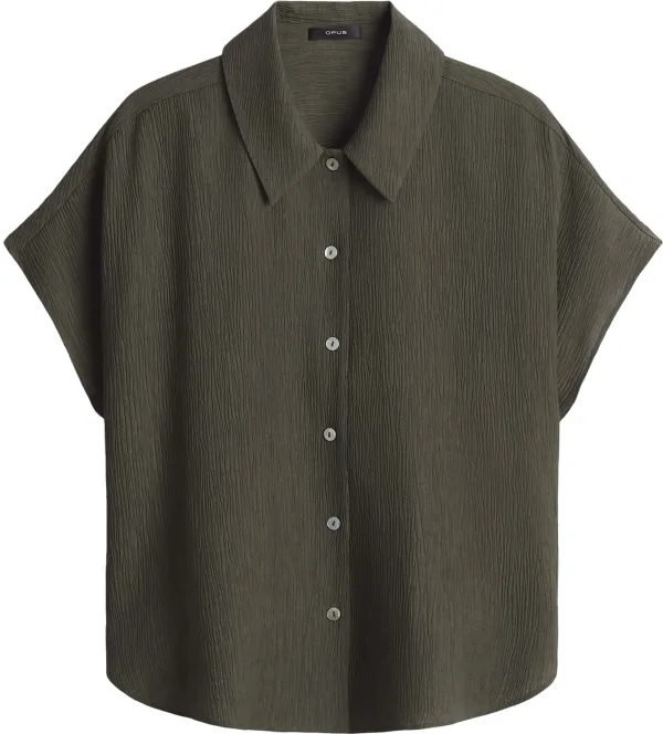 Deze olijfkleurige blouse van het merk Opus is een perfecte toevoeging aan je garderobe. Zowel voor werk als casual gelegenheden is deze blouse een stijlvolle keuze. De blouse is gemaakt van 98% polyester en 2% elasthaan, waardoor deze comfortabel draagt en ook nog eens kreukvrij is. De blouse heeft een klassieke pasvorm en is voorzien van korte mouwen, waardoor het perfect is voor de lente en zomer. De subtiele glans van de stof geeft de blouse een luxe uitstraling. Combineer het met een mooie rok of een chique pantalon en je zult er stralend uitzien. Bestel nu deze veelzijdige blouse en creëer eenvoudig een elegante look!