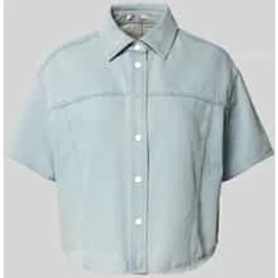 Dames jeansblouse van OPUS;puur katoen;Boxy fit;Model 'Ferluna breath';overhemdkraag;knoopsluiting;1/2-mouwen;ruglengte bij maat S: 53 cm;mouwlengte bij maat S: 21 cm
