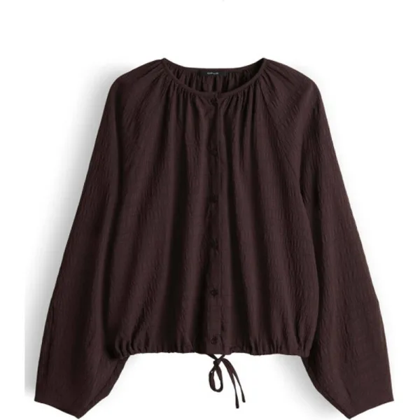 Deze stijlvolle bruine blouse van Opus is een must-have voor elke trendy dame! De blouse heeft lange mouwen en is gemaakt van een zachte en luchtige mix van 50% viscose, 49% polyester en 1% lyocell. Door de comfortabele pasvorm en het tijdloze ontwerp is deze blouse perfect voor elke gelegenheid. Of je hem nu draagt naar je werk of tijdens een avondje uit, hij zal je altijd laten stralen. Voeg deze blouse toe aan je garderobe en geef je outfits een chique en elegante touch. Bestel hem nu in onze kledingwebshop !