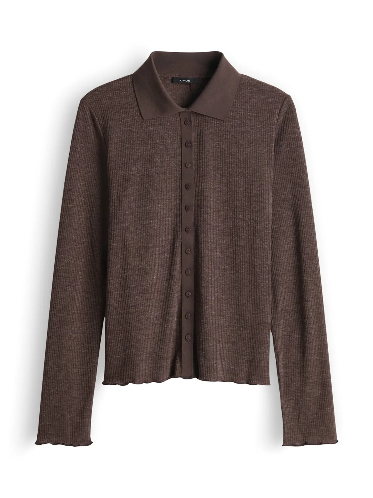 Deze prachtige bruine polo van Opus is een uitstekende toevoeging aan je garderobe. De polo is gemaakt van hoogwaardige materialen, namelijk 79% polyester, 15% viscose en 6% elasthaan. Hierdoor voelt de stof zacht aan en valt de polo mooi om je lichaam. De klassieke kraag en knoopsluiting geven de polo een stijlvolle uitstraling.en#10;en#10;Deze polo met korte mouwen is ideaal voor zowel casual als formele gelegenheden. De neutrale bruine kleur is perfect te combineren met andere kleuren en is geschikt voor elk seizoen. Draag de polo op een jeans voor een casual look of combineer het met een chique broek voor een meer zakelijke outfit.en#10;en#10;Naast de comfortabele pasvorm en stijlvolle uitstraling, is deze Opus polo ook nog eens duurzaam. Door de hoogwaardige materialen gaat de polo lang mee en blijft het zijn vorm en kleur behouden, zelfs na meerdere wasbeurten. Zo geniet je keer op keer van deze prachtige polo.en#10;en#10;Bestel nu deze bruine polo km dames van het merk Opus en voeg een klassieker toe aan je kledingcollectie. Perfect voor elke gelegenheid en gegarandeerd een comfortabele en stijlvolle keuze. Shop nu en ontvang snel en gratis verzending!