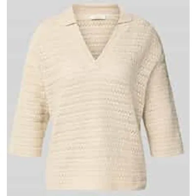 dames gebreide pullover van OPUS;puur katoen;Relaxed fit;Model 'Garakino';Polokraag;V-hals;3/4-mouw;ruglengte bij maat 36: 56 cm;Mouwlengte bij maat 36: 33 cm