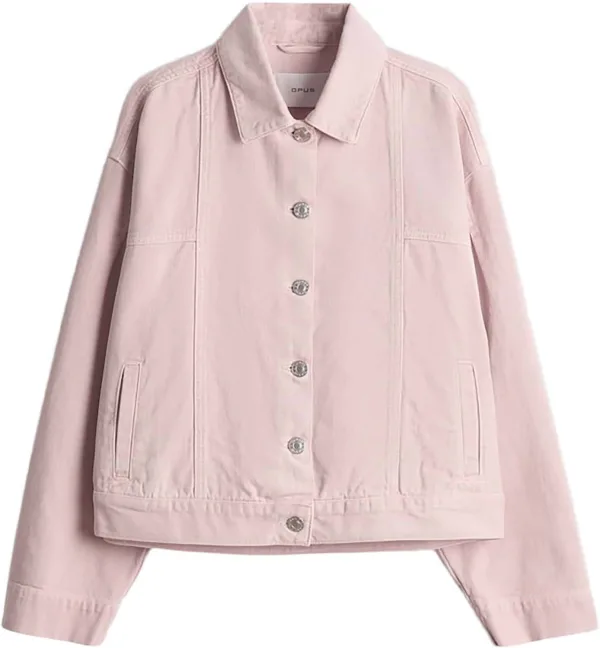 Jas Hemali van Opus is een jas met casual, minimalistische uitstraling, uitgevoerd als effen spijkerjas in zachte lichtroze tint. De oversized pasvorm, spreidkraag, overhemdkraag en lange mouwen geven ruimte, terwijl knopen en voorzakken zorgen voor praktische, toegankelijke details voor ontspannen momenten.