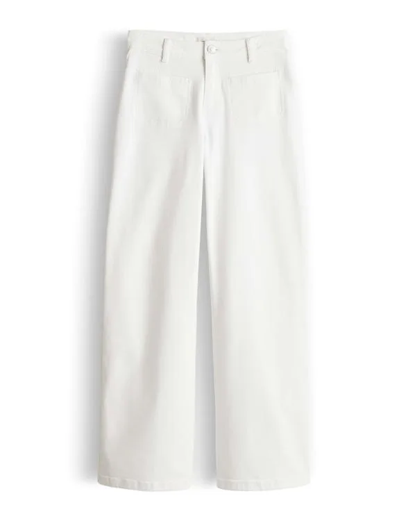 Broek Miva Urban van Opus heeft een hoge taille, losse pasvorm en wijde pijpen voor een relaxte, minimalistische uitstraling. De effen afwerking en 5 zakken maken het model praktisch. Sluit met knoop en rits, met riemlussen. Combineer met een fijngebreide top of vest.