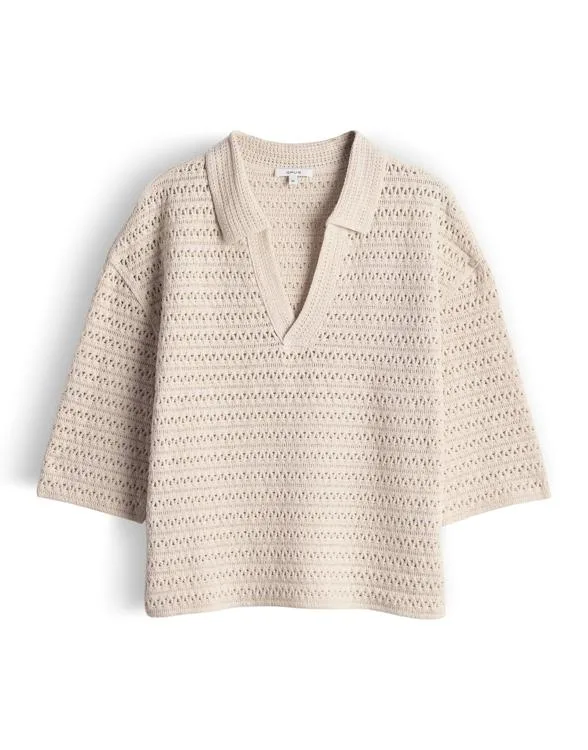 Meer dan alleen een klassiek sweatshirt! De Garakino-trui van Opus verrast met een fijn geperforeerd patroon in een gehaakte look en geeft de sportieve pololook een geraffineerde twist. De hoogwaardige afwerking maakt het een favoriet stuk voor iedereen die comfort en vrouwelijke chic in stijl wil combineren. Ruglengte ca. 56 cm voor maat 36