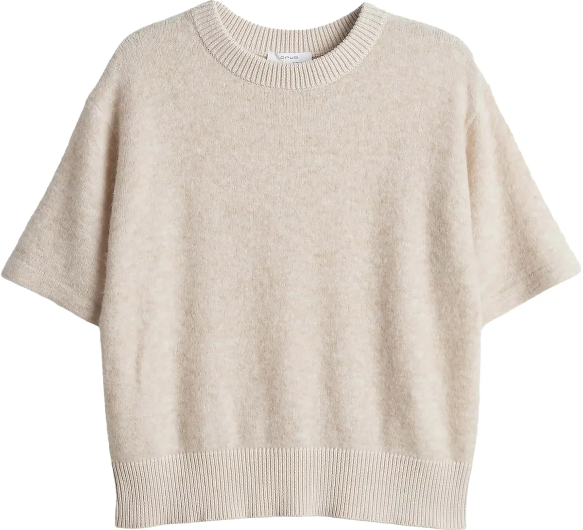 Gebreid damesshirt van OPUS;Materiaalmix met mohair;Recht model;Model 'Pami';Geribde ronde hals;1/2-mouw;Ribboorden;Ruglengte bij maat 36: 56 cm;Mouwlengte bij maat 36: 24 cm