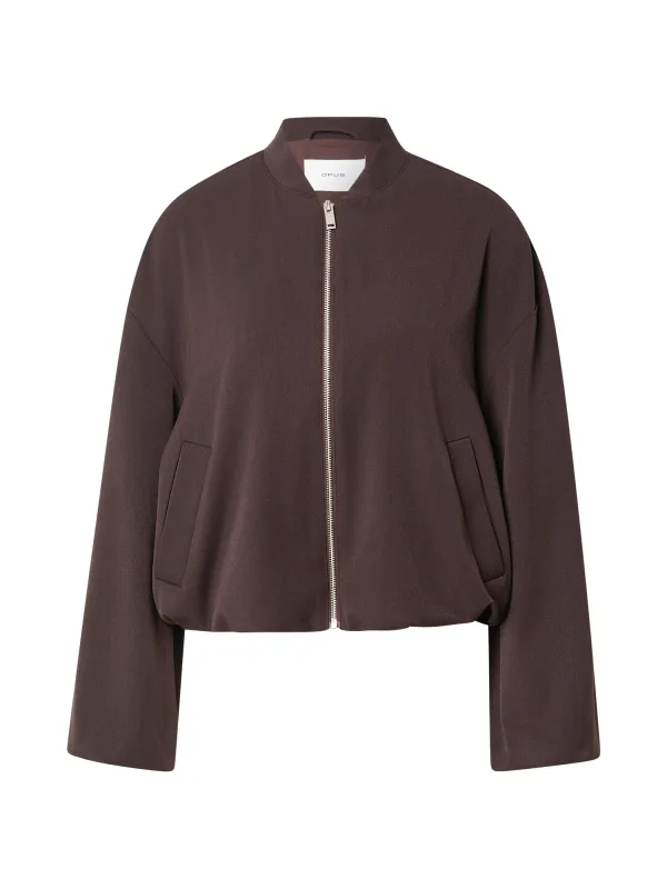 Jas Janica van Opus is een blazer met bomberstijl, casual, minimalistisch en effen. De oversized, brede pasvorm valt soepel, met opstaande kraag en opstaand boord, lange mouwen met ribgebreide boorden, een ritsluiting en zakken op de voorzijde. Kort, recht model.