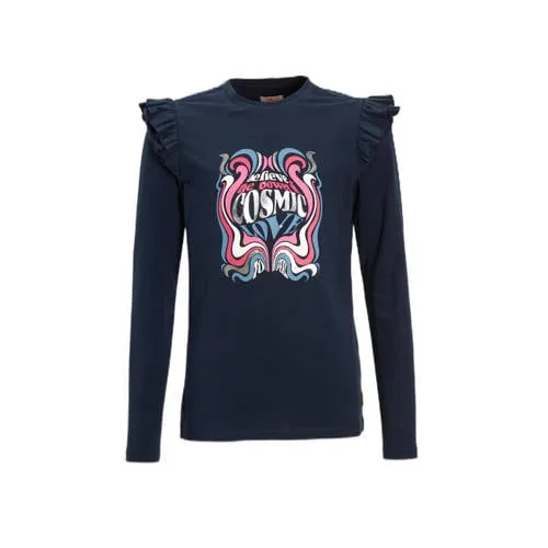 Deze longsleeve voor meisjes van Orange Stars is gemaakt van katoen en heeft een ronde hals. Het model heeft lange mouwen met ruches en een glitterprint met de tekst 'Cosmic Love' op de voorkant, perfect voor een touch of sparkle.Details van deze longsleeve:glitterprintruchemouwen