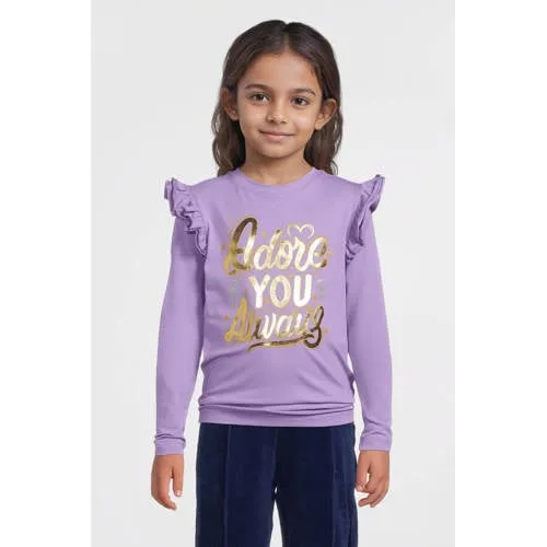 Dit T-shirt voor meisjes van Orange Stars is gemaakt van katoen en heeft een ronde hals. Het model heeft lange mouwen, ruffles op de schouders en een glanzende printopdruk.Details van dit T-shirt:glittertekstruffles op de schouderslange mouwenronde hals