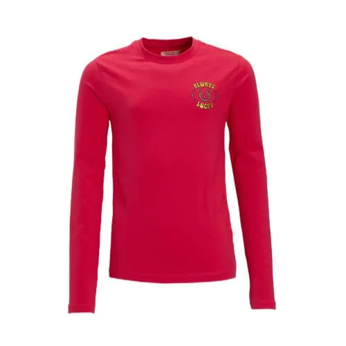 Deze longsleeve voor meisjes van Orange Stars is gemaakt van een zachte katoen en heeft een opvallende printopdruk op de acterkant. Het model heeft een ronde hals en lange mouwen voor een comfortabele pasvorm. Dankzij de glanzende folie printopdruk is het een echte eye catcher. Door de comfortabele pasvorm is het perfect voor elke dag.Details van deze longsleeve:ronde halslange mouwenzachte katoenkwaliteitglanzende ‘Always Lucky’ folie printopdruk