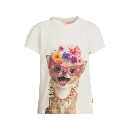 Dit meisjes T-shirt van Orange Stars is een praktische basic met een speelse twist. De ecru kleur is zacht en rustig, terwijl de printopdruk zorgt voor een moderne uitstraling. Door de ronde hals en korte mouwen is dit shirt geschikt voor iedere dag, van schooldagen tot speelafspraken.Zachte stof en speelse pofmouw Gemaakt van 95% katoen / 5% elastaan voor een zachte stof met lichte stretch Pofmouwen geven het T-shirt een speels en meisjesachtig detail Ecru kleur laat zich makkelijk combineren met leggings, jeans of een rok Ronde hals zorgt voor een comfortabele pasvorm bij de hals Printopdruk op de voorkant voor een speelse, eigentijdse look Geschikt voor peuters, kleuters, schoolkinderen en tienersIdeaal voor elke dagDit T-shirt is gemaakt voor drukke dagen vol beweging. De katoenen stof met stretch beweegt soepel mee, zodat je kind vrij kan rennen, klimmen en spelen. In de zomer draag je het los op een short of rok, en op koelere dagen combineer je het eenvoudig met een vest of hoodie.Orange Stars voor vrolijke kinderkledingOrange Stars maakt kinderkleding die aansluit bij het actieve leven van kinderen. Comfortabele stoffen worden gecombineerd met eigentijdse details en prints. Zo krijgt je kind kleding die comfortabel aanvoelt en er verzorgd uitziet, en heb jij een garderobe waar je op kunt vertrouwen.Een luchtig, comfortabel T-shirt dat moeiteloos meegaat in het dagelijkse ritme van je kind.