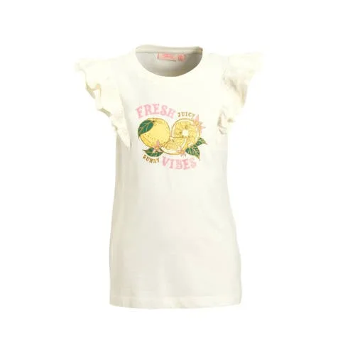 Dit T-shirt voor meisjes is gemaakt van katoen en heeft korte mouwen met ruffle details. Het model heeft een ronde hals en een speelse citroenprint.Details over dit T-shirt:ruffle mouwen