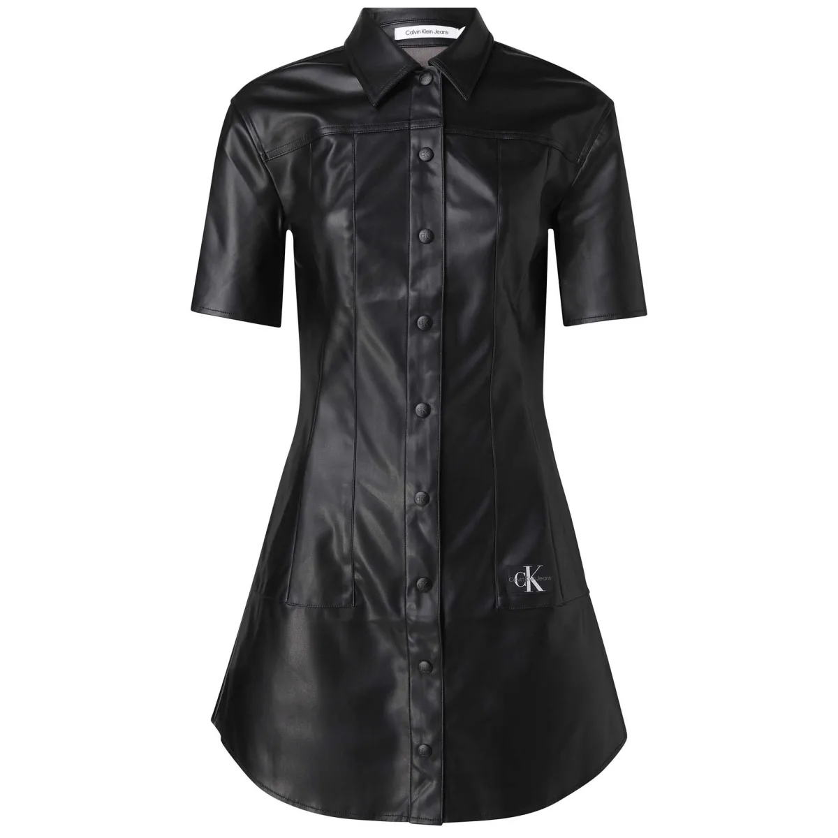 Originele Calvin Klein jurk voor dames, zwart imitatieleer. Authentiek Calvin Klein kledingstuk - streetwear/sportkleding design van Calvin Klein - Calvin Klein voor dames, modieus en perfect voor dagelijks gebruik - deze zwarte Calvin Klein jurk past perfect bij de rest van je garderobe - comfortabel imitatieleer materiaal - klassiek - origineel