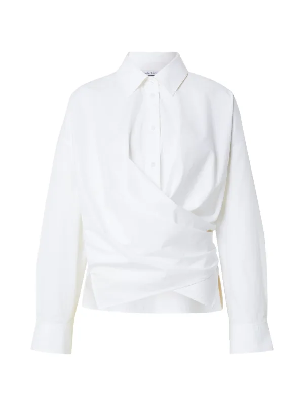 Blouse type: Klassieke blouse; Design: Knop placket, Om te knopen/binden; Type sluiting: Knoopsluiting; Materiaal: Katoen; Motief: Effen; Kraag: Kentkraag; Details: Gedrapeerd; Extra's: Op staal naden, Voelt zacht aan; Pasvorm: Normale pasvorm; Armlengte: Lange mouw; Lengte: Normale lengte