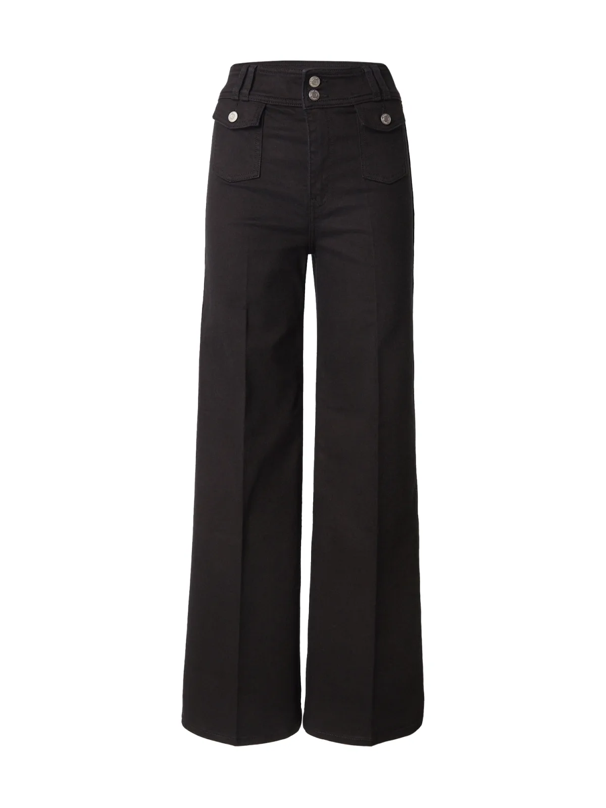 Design: Knop placket, Verborgen rits, Opgezette zakken, Achterzak; Type sluiting: Ritssluiting; Materiaal: Denim; Motief: Effen; Details: Plooien; Extra's: Gewassen effect, Riemlussen; Wassing: Rinsed/dark washed; Lengte: Lang/maxi; Pasvorm: Wide leg; Taillehoogte: High waist