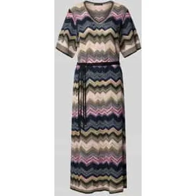 Gebreide jurk van Oui;Viscosemix met katoen;Recht model;Midi-jurk;V-hals;1/2-mouw;Strikceintuur;Ruglengte bij maat 36: 123 cm;Borstomvang bij maat 36: 51 cm;Mouwlengte bij maat 36: 28 cm