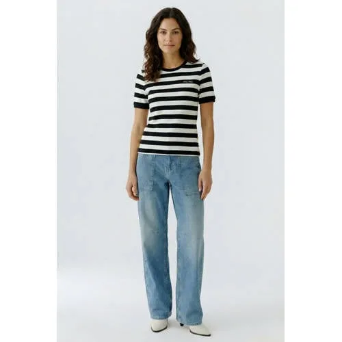 OUI gestreepte T-shirt zwart Prijzen