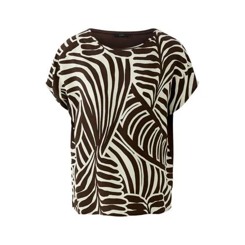 Deze viscose dames top met bladprint van OUI is een luchtige top voor dagen waarop je er verzorgd uit wilt zien zonder ingewikkeld gedoe. De donkerbruine kleur met ecru bladprint combineert een rustige basis met een opvallend dessin, geschikt voor zowel kantoor als een casual dagje uit. De top is gemaakt van 100% viscose, een soepele stof die zacht langs de huid valt en mooi mee beweegt.Details die je elke dag wilt dragen Gemaakt van 100% viscose voor een gladde, luchtige touch Donkerbruin / ecru bladmotief voor een subtiel dessin Korte, rechte mouwen voor een ontspannen silhouet Ronde hals die mooi aansluit zonder te hoog te zitten Geen zakken, waardoor het voorpand strak en rustig oogt Onderdeel van de 'Daily' collectie, gericht op alledaags draaggemak Geschikt voor standaardmaten damesVeelzijdig te combineren in het voorjaarDe top past goed bij een jeans of wijde pantalon voor een ontspannen look. In het voorjaar draag je de top solo, op koelere dagen onder een vest of blazer. De neutrale kleurstelling maakt combineren met natuurtinten, zwart of crème eenvoudig.OUI: eigentijdse mode met een doordachte pasvormOUI staat bekend om moderne damesmode met aandacht voor details en draagcomfort. Prints, kleuren en silhouetten worden zorgvuldig op elkaar afgestemd, zodat items onderling goed te combineren zijn. Met deze top haal je een doordacht kledingstuk in huis dat je eenvoudig steeds opnieuw combineert in je dagelijkse garderobe.Een luchtige top die eenvoudig in je dagelijkse outfits past.