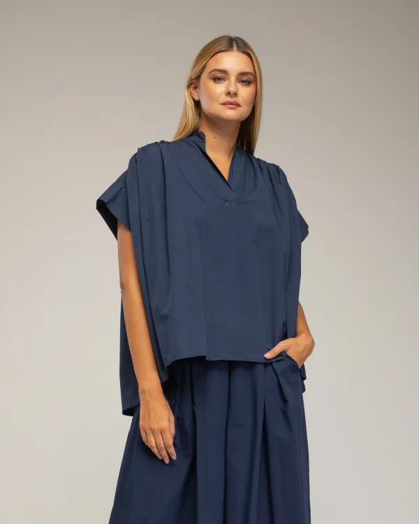 Oversized top met korte mouwen en plooien op de schouders