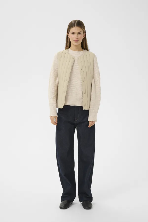 Gewatteerd gilet met rechte pasvorm, ronde hals en knoopsluiting. Verticale stiksels geven dit vest een gestroomlijnde, moderne uitstraling.