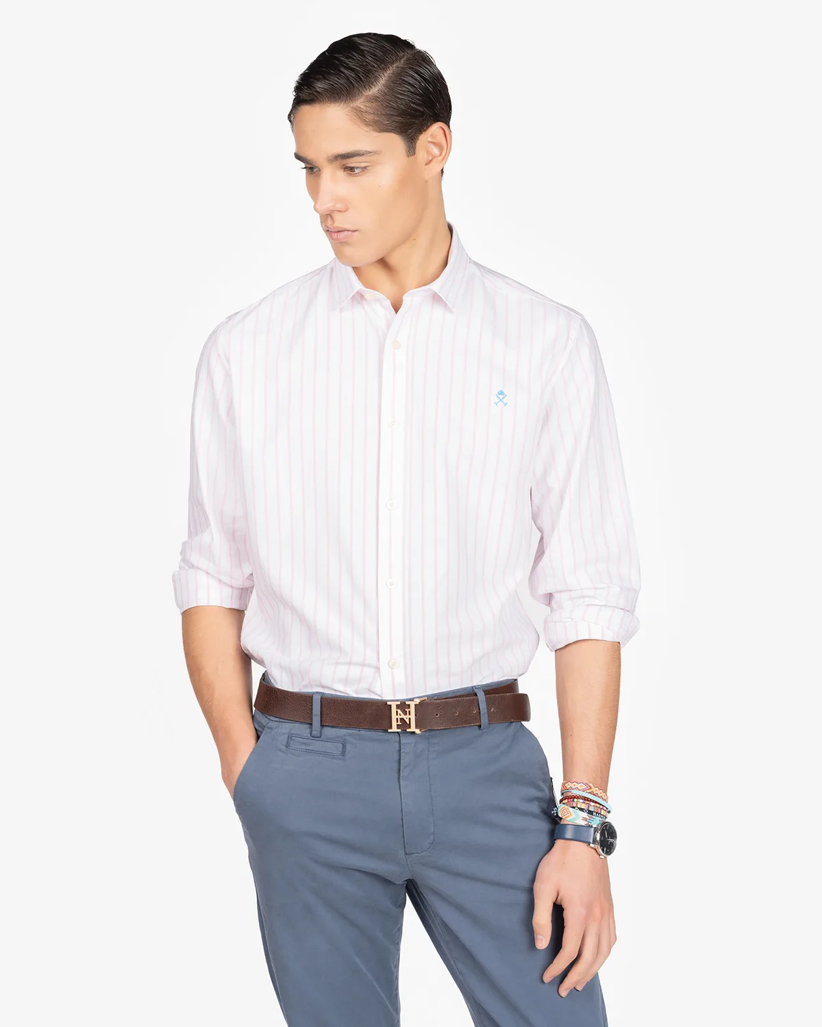 Een kledingstuk dat bewijst dat ware elegantie schuilt in kwaliteit en detail. De snit van het overhemd is de definitie van precisie en biedt een silhouet dat past maar niet knelt, waardoor je de hele dag door een verzorgde uitstraling hebt. Het katoen van de hoogste kwaliteit zorgt voor een zacht gevoel en duurzaamheid die de verwachtingen overtreft, wat zorgt voor ongeëvenaard ademend vermogen en comfort.