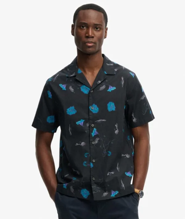 Overhemd met Korte Mouwen en Cabana-print Black Prijzen