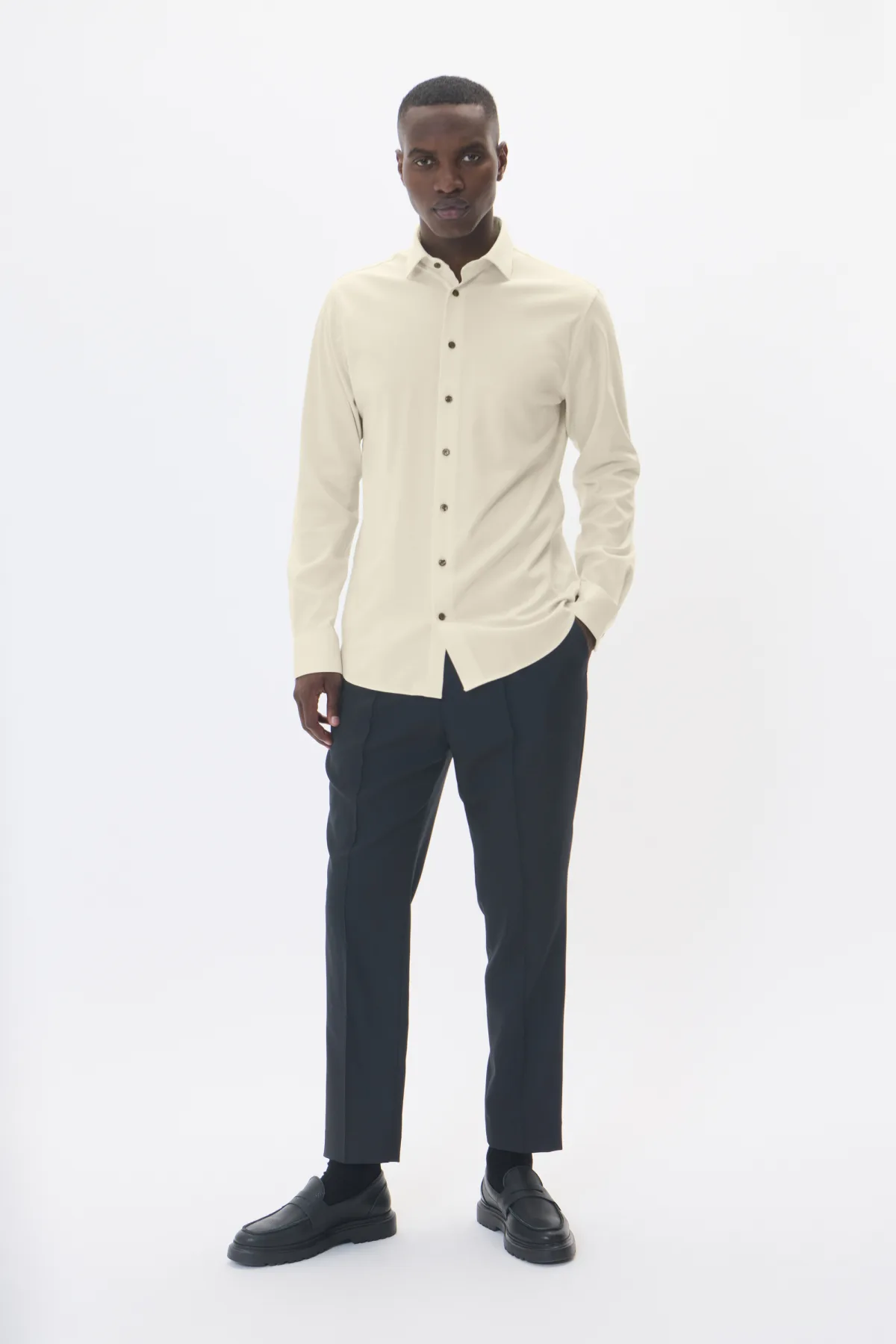 Dit overhemd voor heren biedt een regular fit en tijdloze afwerking. Met een gestructureerde kraag, lange mouwen en knoopsluiting voor veelzijdig draagcomfort.