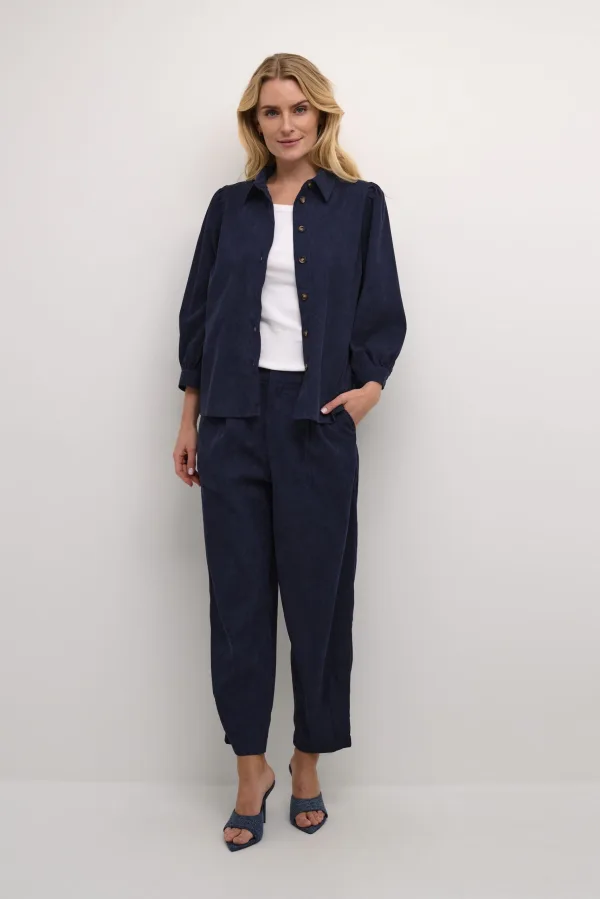 Het corduroy overhemd heeft een rechte pasvorm, een klassieke puntkraag en een volledige knoopsluiting. Subtiele plooien op de schouder en lange mouwen met manchetten creëren een nette uitstraling.