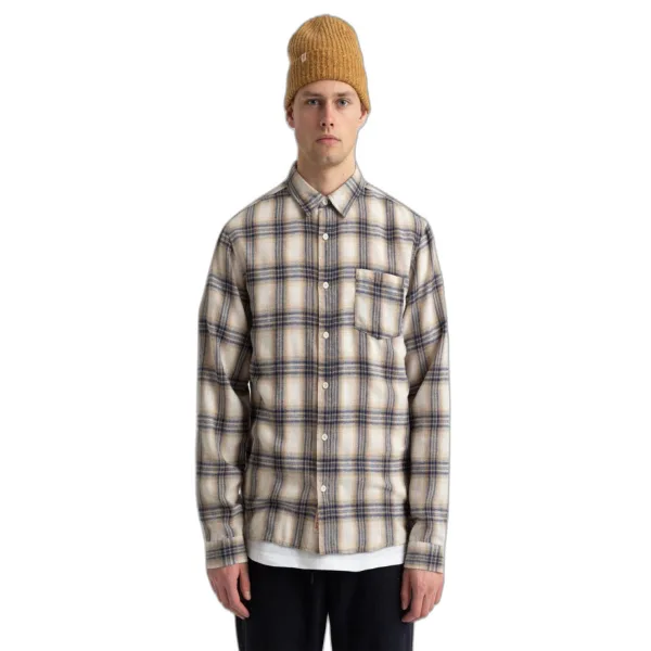 Een overhemd met lange mouwen en een ruitpatroon. Borstzak en shirtlabel.