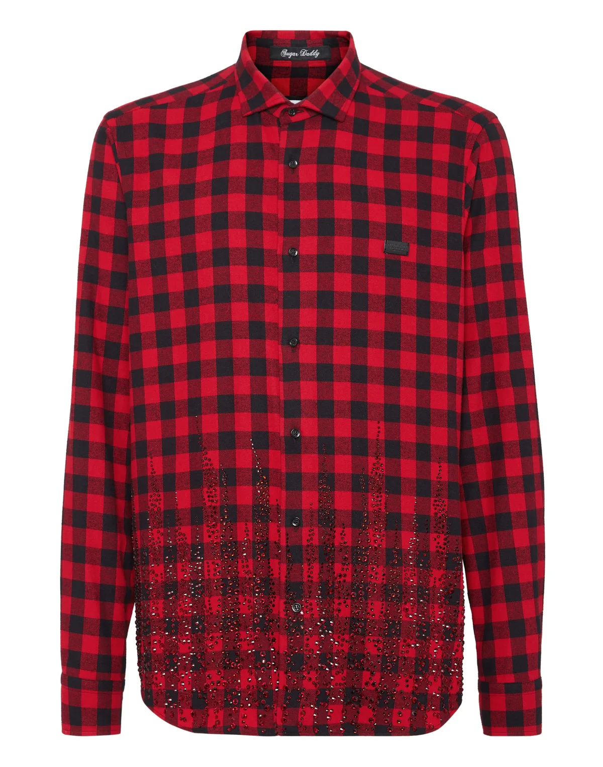 The flannel checkered shirt is a timeless must-have. This is Plein’s version. Yarn-dyed checkered cotton flannel Schmucksteinbesetzter bottom Metal logoed badge sewn at left chest Logoed buttons fastening Curved hem Fit: Sugar Daddy