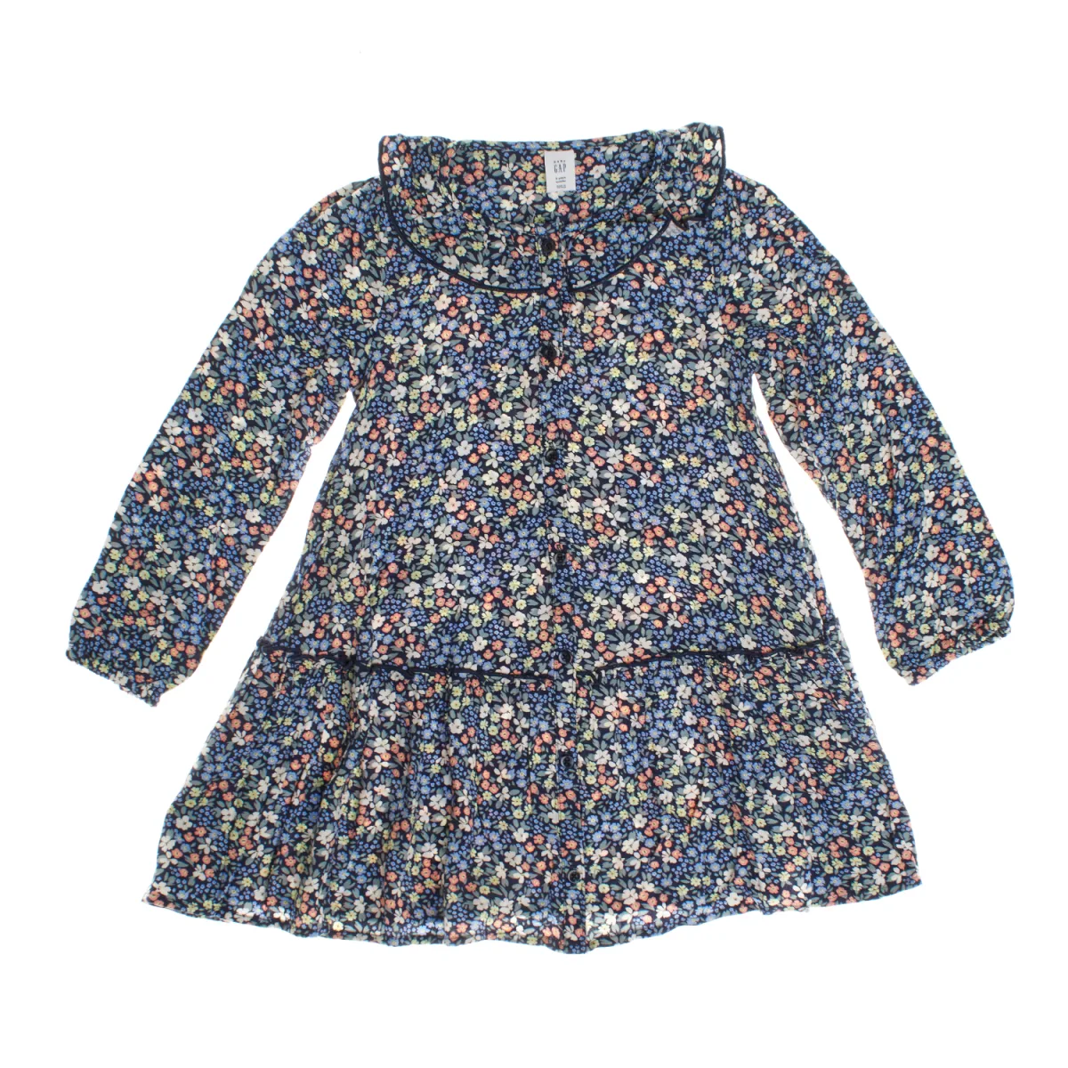 Meisjeshemdjurk met een charmante bloemenprint, ideaal voor een frisse, lentelook. Deze jurk is gemaakt van lichtgewicht stof en heeft een knoopsluiting die de klassieke, functionele stijl benadrukt. De ronde hals met biesdetails voegt een delicaat accent toe, terwijl de lange mouwen hem veelzijdig maken voor elke gelegenheid. De licht gerimpelde taille creëert een subtiel uitlopend effect aan de onderkant, wat zorgt voor beweging en elegantie. Deze jurk is perfect voor speciale gelegenheden of om elke dag te dragen en combineert comfort en stijl in één mooi stuk. Samenstelling: 100% viscose Onderhoud: - Machinewas max. 30ºC. - Gebruik gelijke kleuren in de was. - Vermijd het gebruik van bleekmiddelen. - Drogen op lage temperatuur. - Strijken op lage temperatuur. - Niet chemisch reinigen.