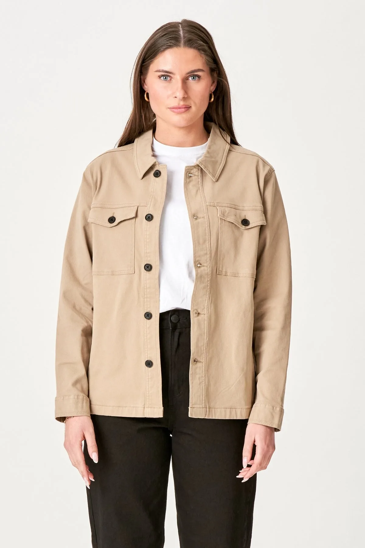 Ervaar de perfecte mix van stijl en comfort met het Twill Overshirt - Beige voor dames. Het veelzijdige overshirt is ontworpen om klasse toe te voegen aan elke garderobe zonder concessies te doen aan het comfort, ideaal voor zowel alledaagse als weekendgarderobes. Gemaakt van een duurzame twill, biedt het een lichtgewicht en warme ervaring, perfect voor de overgang tussen seizoenen. Het overshirt is gemaakt voor wie het graag stijlvol en simpel houdt. Door de tijdloze beige kleur is hij gemakkelijk te combineren met bijna alles in je garderobe, van jeans tot jurken. Dit overshirt is onberispelijk chic en functioneel en is de ultieme keuze voor de modebewuste vrouw. Voeg een beetje flair toe aan je outfits en omarm de stijlvolle en moderne twist die dit Twill Overshirt biedt met zijn elegante snit.