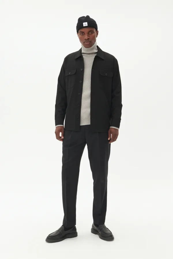 Shirt jacket met een recht silhouet, gestructureerde uitstraling, klassieke kraag, knoopsluiting, lange mouwen en twee borstzakken met klep.
