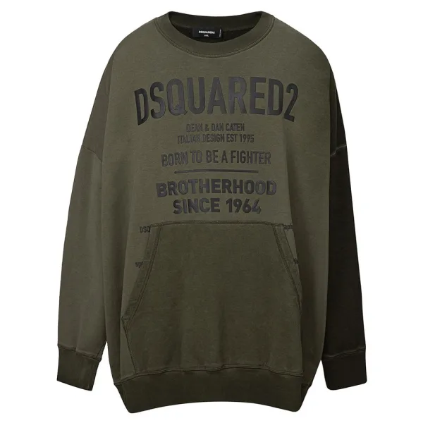 Omarm moeiteloze stijl en maak een statement. Deze Dsquared2 sweatshirt biedt zowel comfort als een high-fashion uitstraling. Gemaakt van 100% katoen, zorgt de oversized pasvorm voor comfort gedurende de hele dag. De gedurfde grafische print toont de branding van Dsquared2 en de iconische tekst 'Brotherhood Since 1964'. Geniet van een gemakkelijk te onderhouden constructie met eenvoudige machinewasinstructies. Perfect voor het verbeteren van je casual streetwear-look, deze sweatshirt mengt naadloos comfort met iconisch design. Een veelzijdige aanvulling op je garderobe, ideaal om een blijvende indruk te maken.