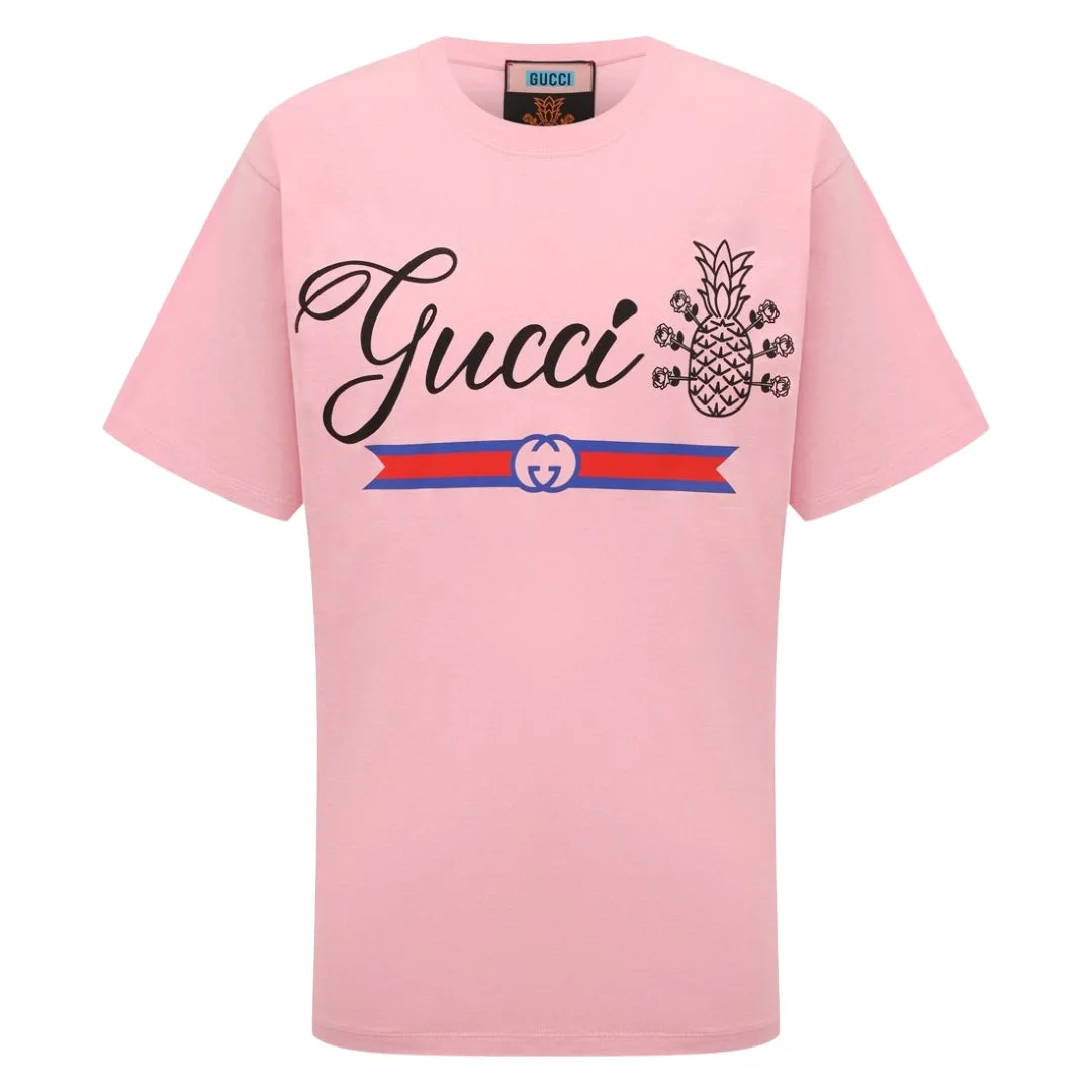 Oversized fit roze T-shirt met ananaslogo van Gucci Prijzen