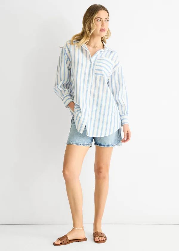 Oversized katoenen shirt met blauwe strepen