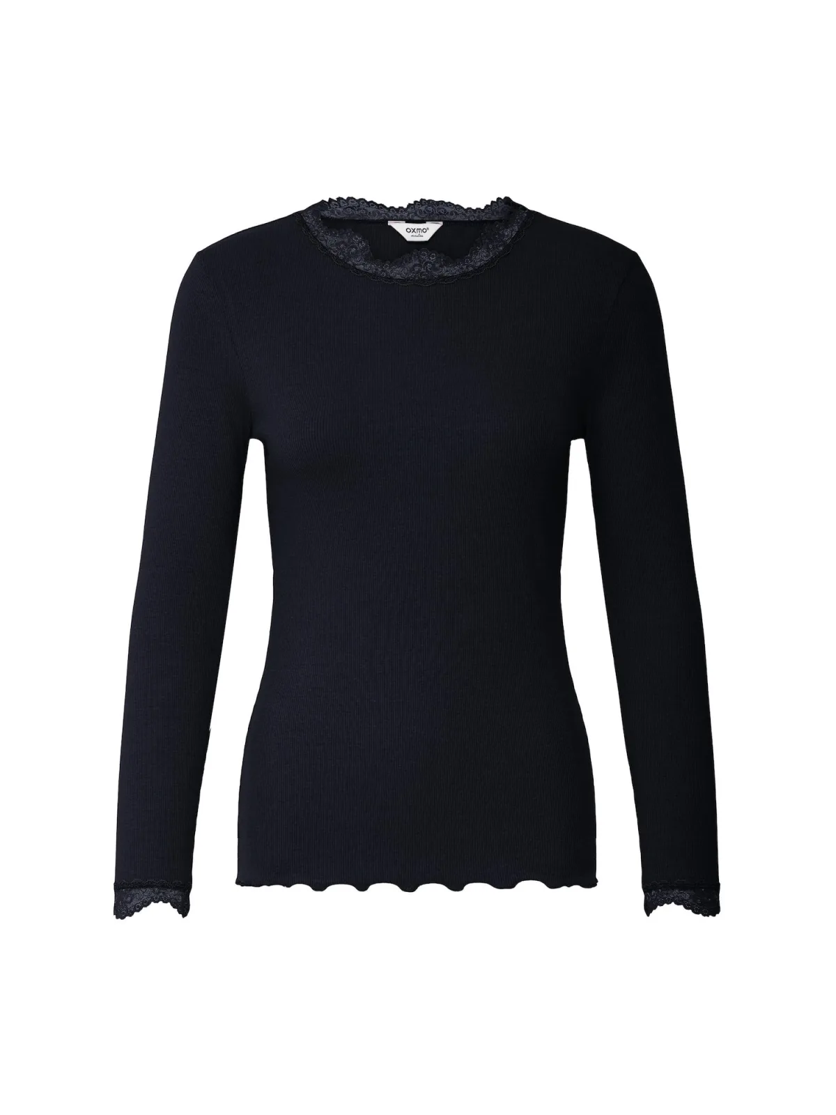 Materiaal: Jersey, Katoen; Halstype: Ronde hals; Motief: Effen; Details: Kant; Pasvorm: Aansluitende pasvorm; Armlengte: Lange mouw; Lengte: Korte pasvorm