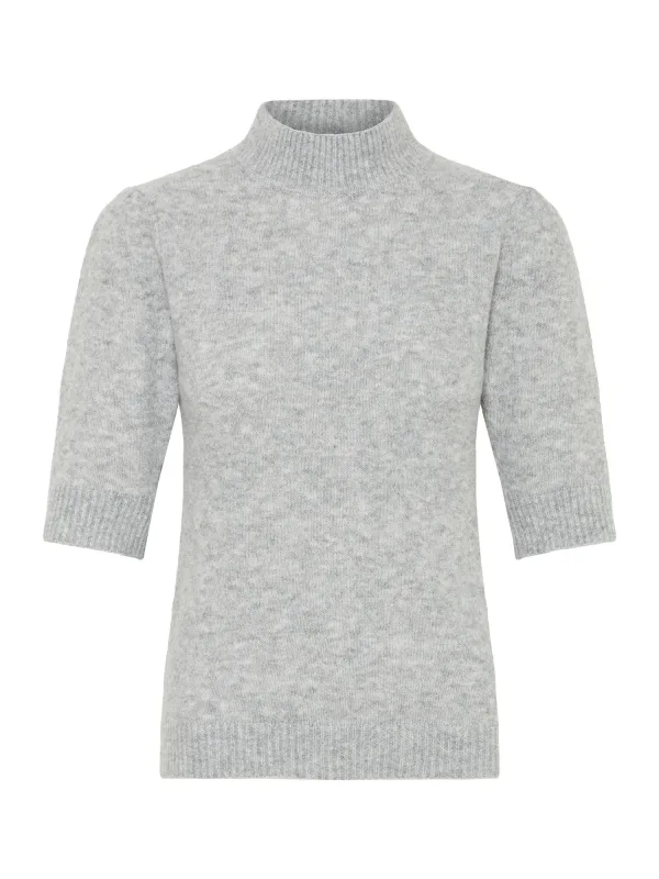 Design: Geribd ceintuurtje; Materiaal: Knitwear; Halstype: Opstaande kraag; Motief: Mélange; Extra's: Met textuur; Pasvorm: Normale pasvorm; Armlengte: Halve mouw; Lengte: Normale lengte