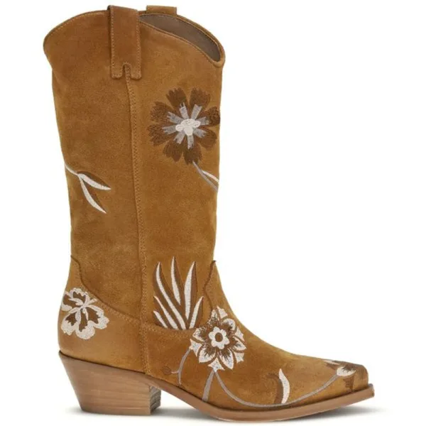De Texaanse laarzen van P.A.R.O.S.H. zijn gemaakt van suède en hebben een Texas hak en een taps toelopende neus. De algehele bloemenborduursels voegen een decoratieve en kenmerkende touch toe, waarmee westerse stijl en fijne details worden gecombineerd. Seizoen: SS26 Samenstelling: 100% Kalfsleer Bos Taurus