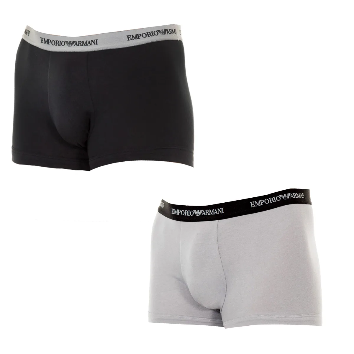 Pack-2 Boxer Emporio Armani. Gemaakt van stretch katoen. Kleur zwart met grijze tailleband en grijs met zwarte tailleband. Elastische tailleband met achtereenvolgens de geborduurde naam en het logo. Comfortabele en ademende stof. Anatomische voorkant, met capaciteit om losjes vast te houden. Tone naden uitzicht. Samenstelling: - 95% katoen. - 5% spandex. Wasvoorschriften: -Wastemperatuur max. 40. Geen bleekmiddel. Stomerij toegestaan. -Mag in de droogtrommel. -Druktemperatuur max. 130.