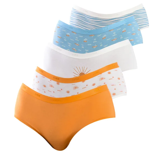 Set van 5 slips DIM Katoen Stretch Comfort. Rubberen tailleband. Detail van het merklogo geborduurd op de tailleband. Elastische en ademende stof. Ton-sur-ton binnenvoering. Naden in toon zichtbaar. Het grenzeloze comfort van elastisch, zacht en rekbaar katoen. De bedekkende en minimalistische vorm van deze damesslip is een basic. Gemaakt van zeer zacht elastisch katoen en met een contrasterende tailleband. Eco-verantwoord initiatief. Herbruikbaar zakje. Samenstelling: 95% Katoen; 5% Elastaan Onderhoud: Wassen op 40°C. Niet in de droger. Niet bleken. Niet strijken.