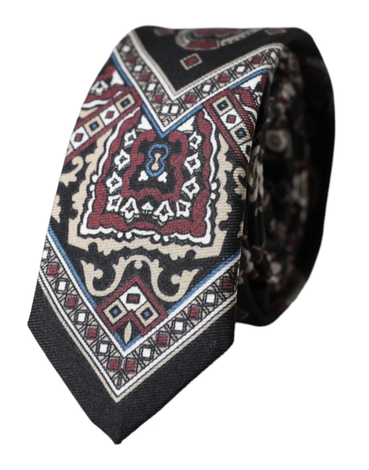 Verhoog, definieer en trek de aandacht. Deze zijden stropdas van Dolce & Gabbana voegt een vleugje verfijnde elegantie toe aan elke gelegenheid. Gemaakt van hoogwaardige zijde, zorgt het gedurfde paisleypatroon in zwart, rood en beige, omrand door een geometrische rand, voor een statement zonder woorden. De klassieke stijl maakt het een veelzijdige aanvulling op zowel formele als semi-formele outfits. Maak een blijvende indruk met dit tijdloze accessoire. Alleen chemisch reinigen.