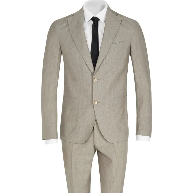 54% wol, 46% linnen; Pal Zileri-pak; Model: M33PF2492--34116 36; Hoogwaardige afwerking; Zachte wolmix; reverskraag; Twee voorzakken, één borstzak; Twee binnenzakken; Twee zijsplitten; Sluiting pantalon: ritssluiting, knoop; Twee zijzakken, twee paspelzakken aan de achterkant; riemlussen; Pal Zileri-logodetails