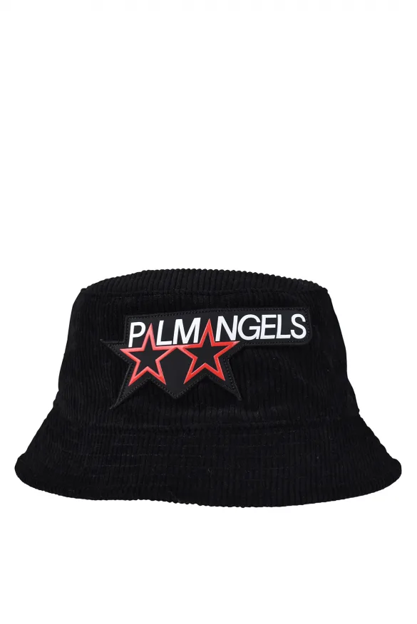 Zwarte bob van Palm Angels-fluweel.Geborduurde logopatch met rode sterren in het midden.Gemaakt in Italië.