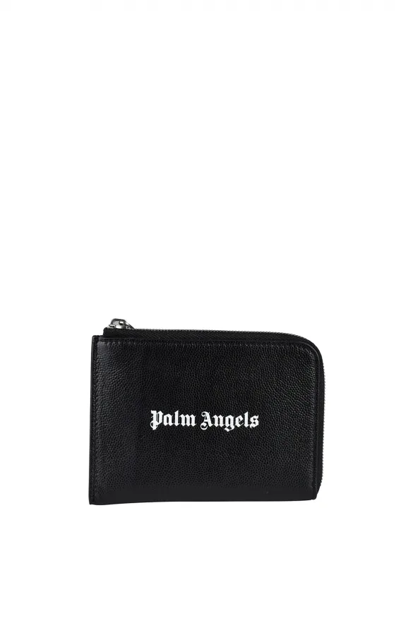 Palm Angels-portemonnee van zwart generfd leer.Wit logo gedrukt op de voorkant.Afneembare kaarthouder aan de binnenkant.Eén centraal vak met ritssluiting.100% leer.Gemaakt in Italië.