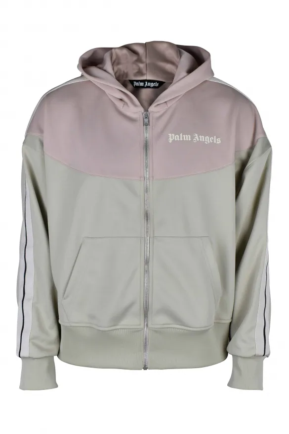 Beige en roze Palm Angels vest.Merklogo gedrukt op de borst.Ritssluiting aan de voorkant.Lange mouwen met zijstrepen.Klassieke kraag.Twee zakken aan de voorkant.Capuchon.Gemaakt in Italië.